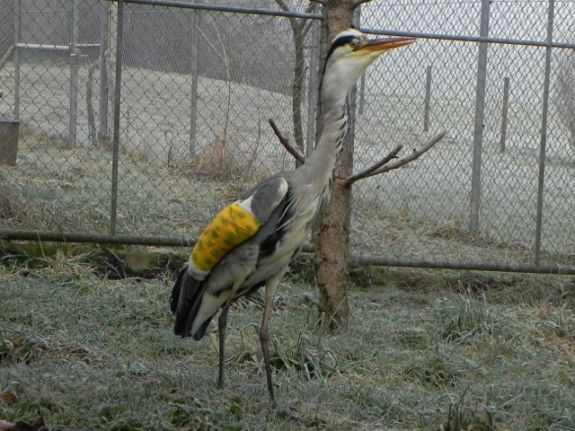 Bild unten: Graureiher mit Flügelbruch. Vom Tierarzt korrekt versorgt, bei mir dann in Weiterbehandlung inkl Reha bis zur Wiederauswilderung. Er war allerdings eine Ausnahme...