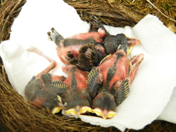 Oft höre ich das Argument, es habe Katzen da. Ja, das mag sein. Es gibt enorm viele Katzen und die sind ein Problem für die Vogelwelt. Dennoch hilft es dem Vogel nicht, wenn sie ihn von den Eltern entführen. Oft ist es noch so, dass Aestlinge schon soviel Scheu vor Menschen haben, dass sie gar kein Futter annehmen. Sie würden in meiner Station kläglich verhungern! Bitte verscheuchen Sie in so einem Fall lieber die Katzen, damit haben Sie dem Vogel und seiner ganzen Familie mehr geholfen.