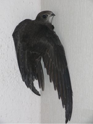 Ein Herr rief mich an und erzählte von einem Mauersegler. Er sei in einem Netz gehangen, er habe ihn befreit, nach Hause genommen und nun 2 Tage mit Cervelats gefüttert. Ob er ihn mir bringen könne?
