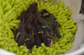 Desweiteren hatten wir in den letzten Tagen nochmals einen Schwall von Spatzen. Insgesamt zur Zeit da: 5 Segler, 15 Spatzen (davon 5 in der Aussenvoliere, kurz vor Freilassung) und 6 Kohlmeisen, die ebenfalls bald in die Aussenvoliere können.