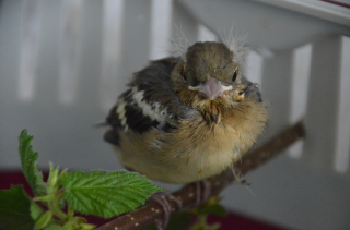 2 Spatzen sitzen noch im Inkubator, 7 Spatzen in der Höhle und 1 Buchfink (Punky) teilt sich die kleine Aussenvoliere mit einem noch nicht ganz reifen Rotschwänzchen