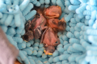 2 Kohlmeisen sind gekommen, die Eltern von der Katze gefressen (wie ich das hasse!!!), die Kleinen sind erst sehr schwach und apathisch angekommen, es waren 3. Die anderen lagen tot im Kasten, die 3. ist bei mir relativ bald auch verstorben aber die beiden Überlebenden machen sich richtig gut.