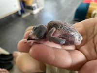 Seines Zeichens... Wer hätte es gedacht? Trommelwirbel.... Ein Spatz! Nun, er ist noch so klein, er ist noch kein Schreihals, piepst noch ganz harmlos im Brutkasten. Das wird sich aber eventuell bald ändern. Seine Geschichte ist speziell: wieder mal Menschen, die leider zu langsam reagieren, nicht antworten und dann, nachdem schon eine Abgabe vereinbart wurde, plötzlich der Meinung sind, von Basel nach Therwil sei schon wahnsinnig weit, die Zeit haben sie nicht mehr heute, kann der Vogel auch morgen kommen?! Eeeeeh! NEIN!!! Der wenige Tage alte Spatz lang schon auf dem Teer, wurde gefunden, lag unterkühlt herum, mehrere Stunden passierte nichts, kein Futter, keine richtige Wärme. Und dann so lapidar: wir bringen ihn morgen. Neee, die Nacht hätte er nie überlebt, denn als er ankam, war es schon mehr als kritisch. Er hat dann auch etwas geserbelt und ich hatte Zweifel, ob er es packt. Inzwischen scheint er stabil, entwickelt sich, hat die Äuglein offen... und er hätte gerne einen Kuschelkollegen... Daumen drücken für Fridolin, den Ersten!